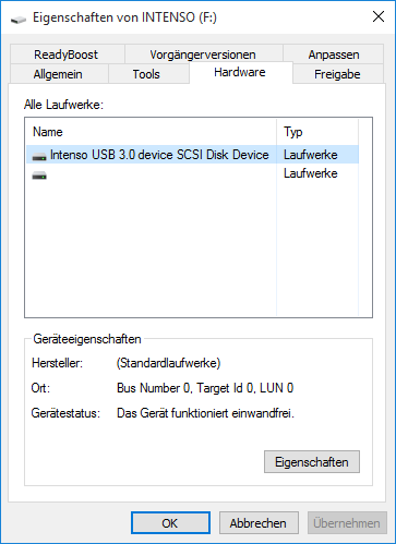 Drive Model: Intenso USB 3.0 device