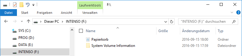 Im Windows Explorer sieht die Platte so aus: Screenshot vom 2016-09-15:
